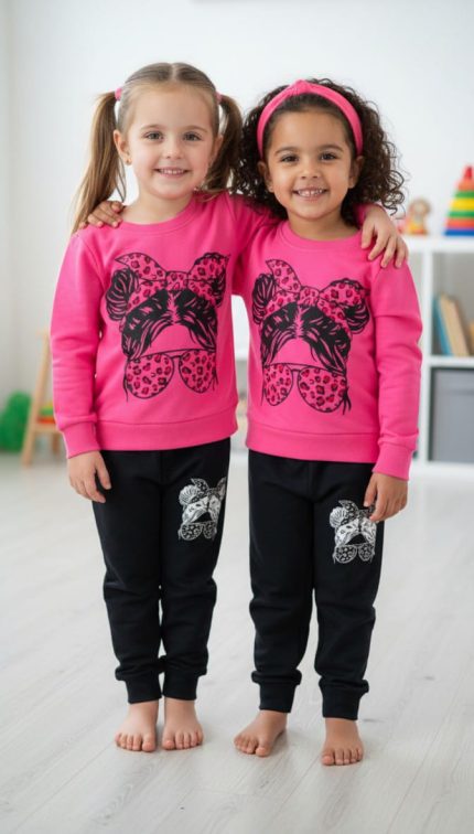Pink 2 Piece Cute Cool Girl Sweatshirt and Pants