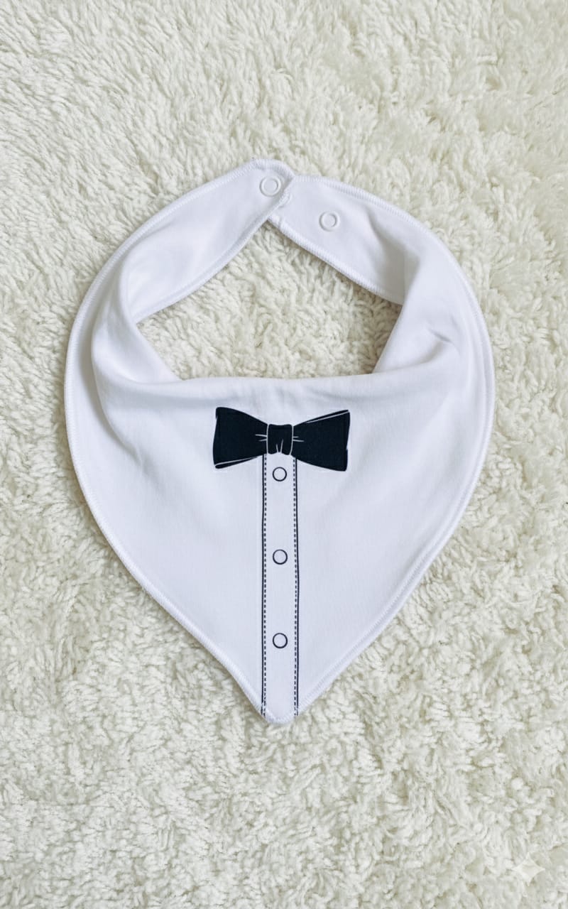 White Bow Printed Baby Bib